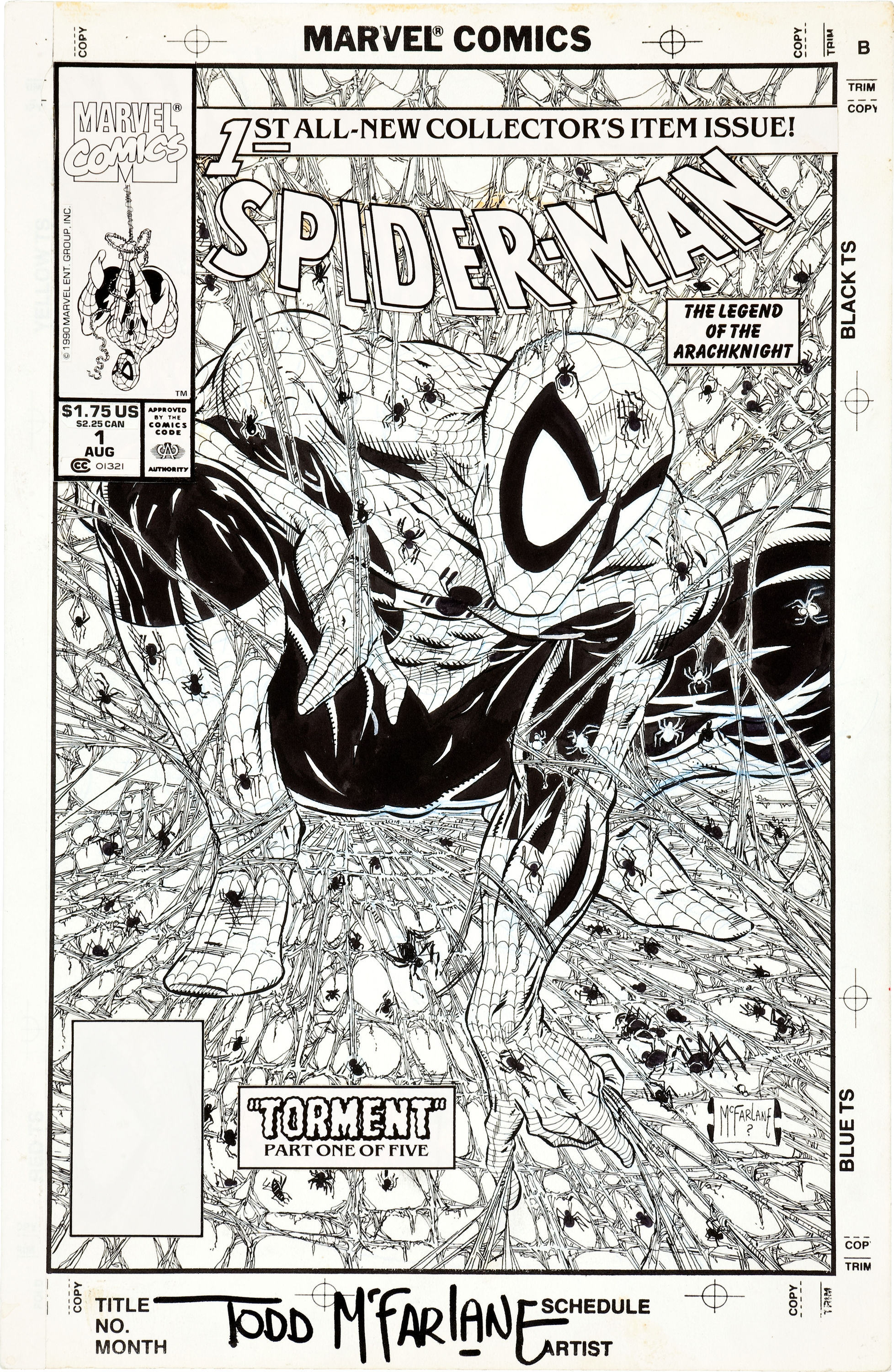 Die von Todd McFarlane 1990 geschaffene Originalzeichnung des Covers von „Spider-Man“ #1 wurde bei einer Online-Auktion in den USA für 358.500,00 Dollar versteigert.