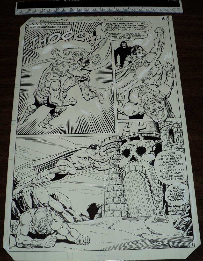 Bei einer Online-Auktion in den USA wurde die Originalzeichnung der 15. Seite von „DC Comics Presents“ #47 für 1.125,00 Dollar versteigert. Die 30 Jahre alte Geschichte, in der es Superman nach Eternia verschlägt, markiert He-Mans ersten Comic-Auftritt (von den Mini-Comics, die seinerzeit den Figuren beilagen, einmal abgesehen).
