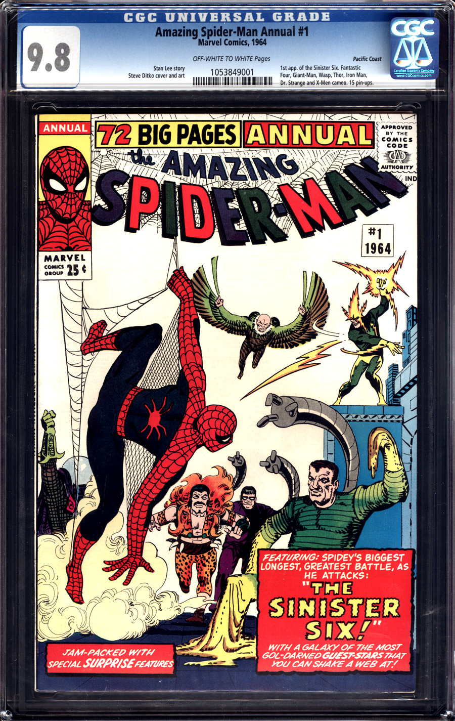 Ein von CGC mit 9.8 gegradetes Exemplar des 1964 erschienenen allerersten Spider-Man Annuals ist bei einer Online-Auktion in den USA für 28.643,00 Dollar versteigert worden.