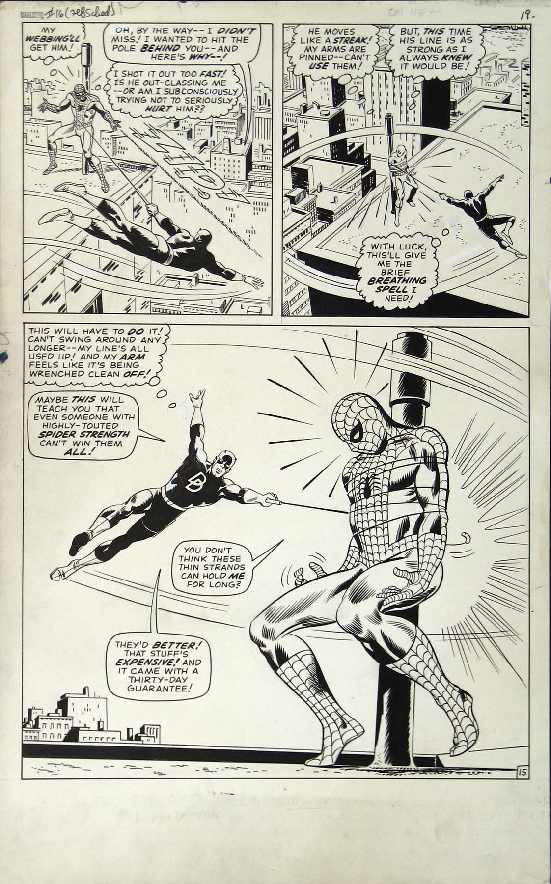 Bei einer Online-Auktion in den USA wurde die Originalzeichnung einer Seite von „Daredevil“ #16 für 41.500,00 Dollar versteigert. Im Rahmen der 1966 erschienenen Geschichte zeichnete Comiclegende John Romita zum ersten Mal Spider-Man.